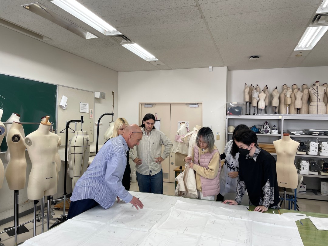 During the workshop, students engaged in archive-based research—an approach Professor Kershaw has developed extensively over the years—and worked directly with the pattern of the Swiss Army M70 Alpenflage Jacket, gaining insight into the construction and logic behind technical garments.
