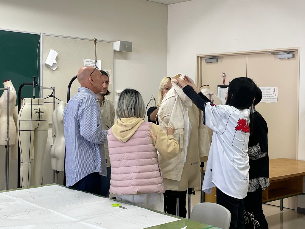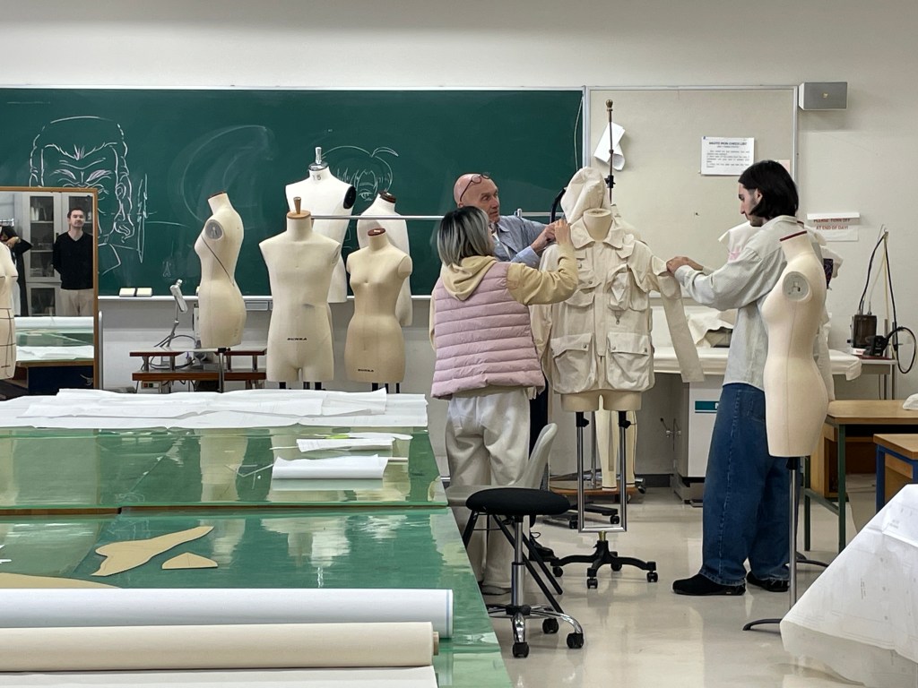 During the workshop, students engaged in archive-based research—an approach Professor Kershaw has developed extensively over the years—and worked directly with the pattern of the Swiss Army M70 Alpenflage Jacket, gaining insight into the construction and logic behind technical garments.