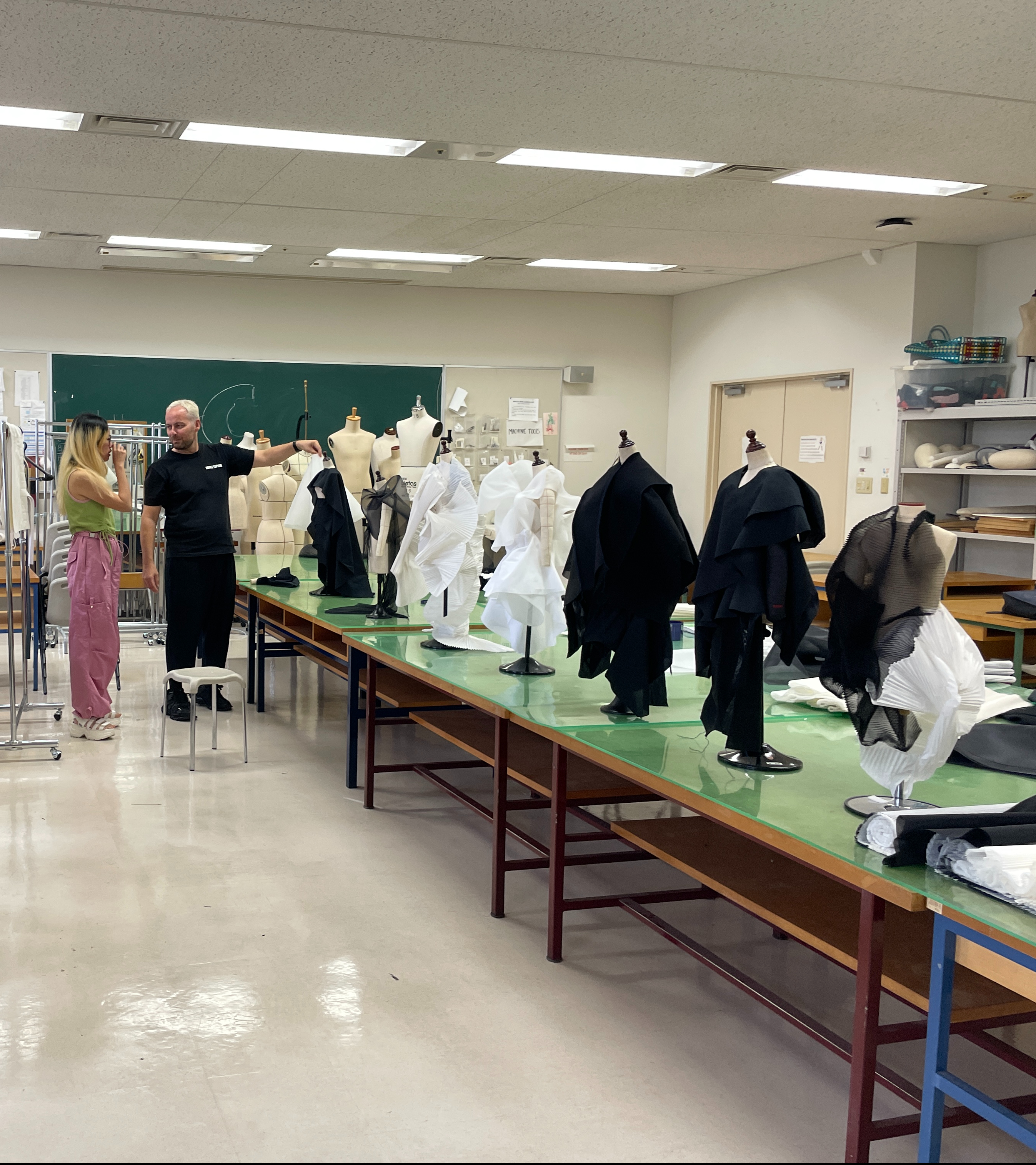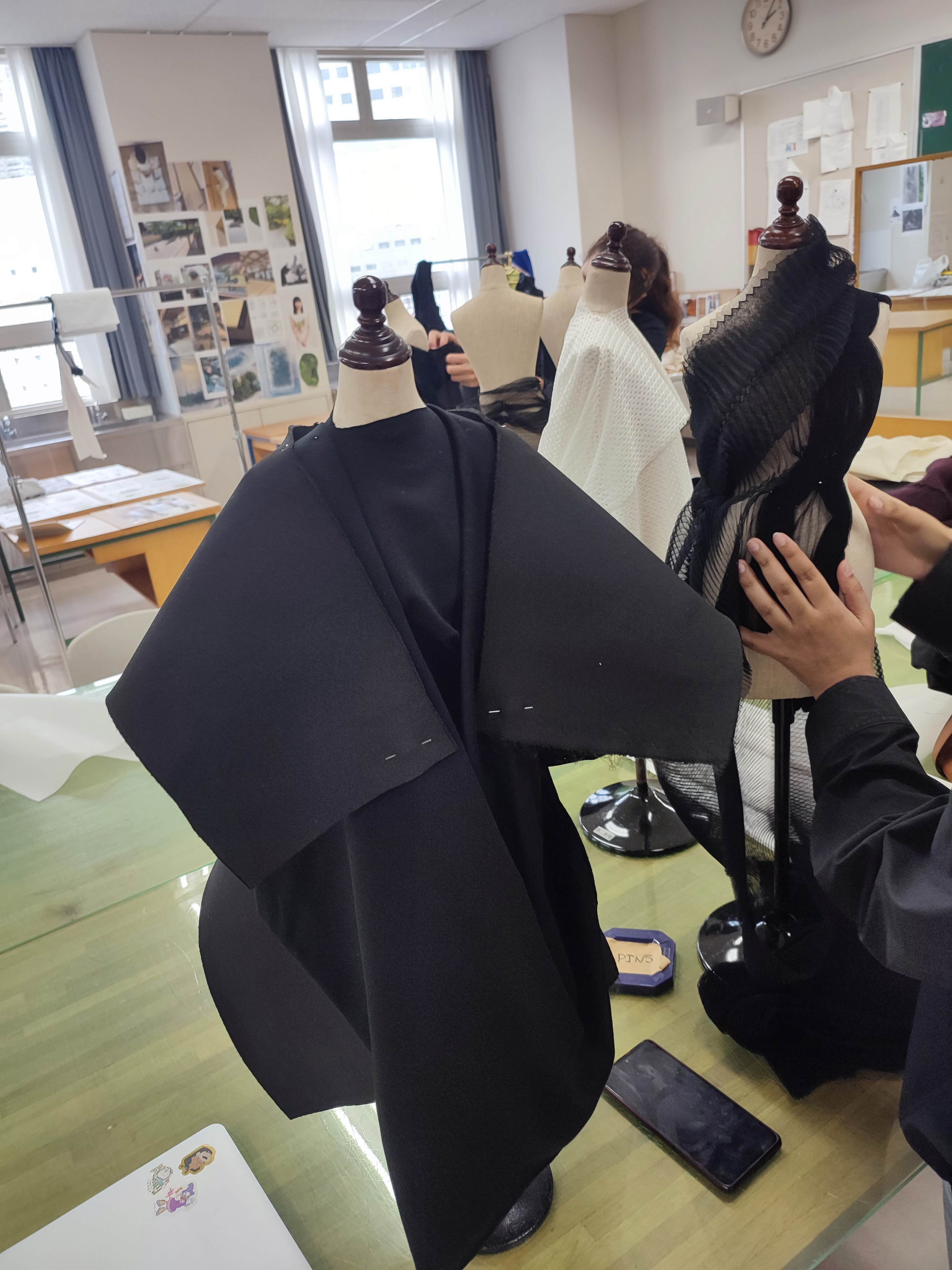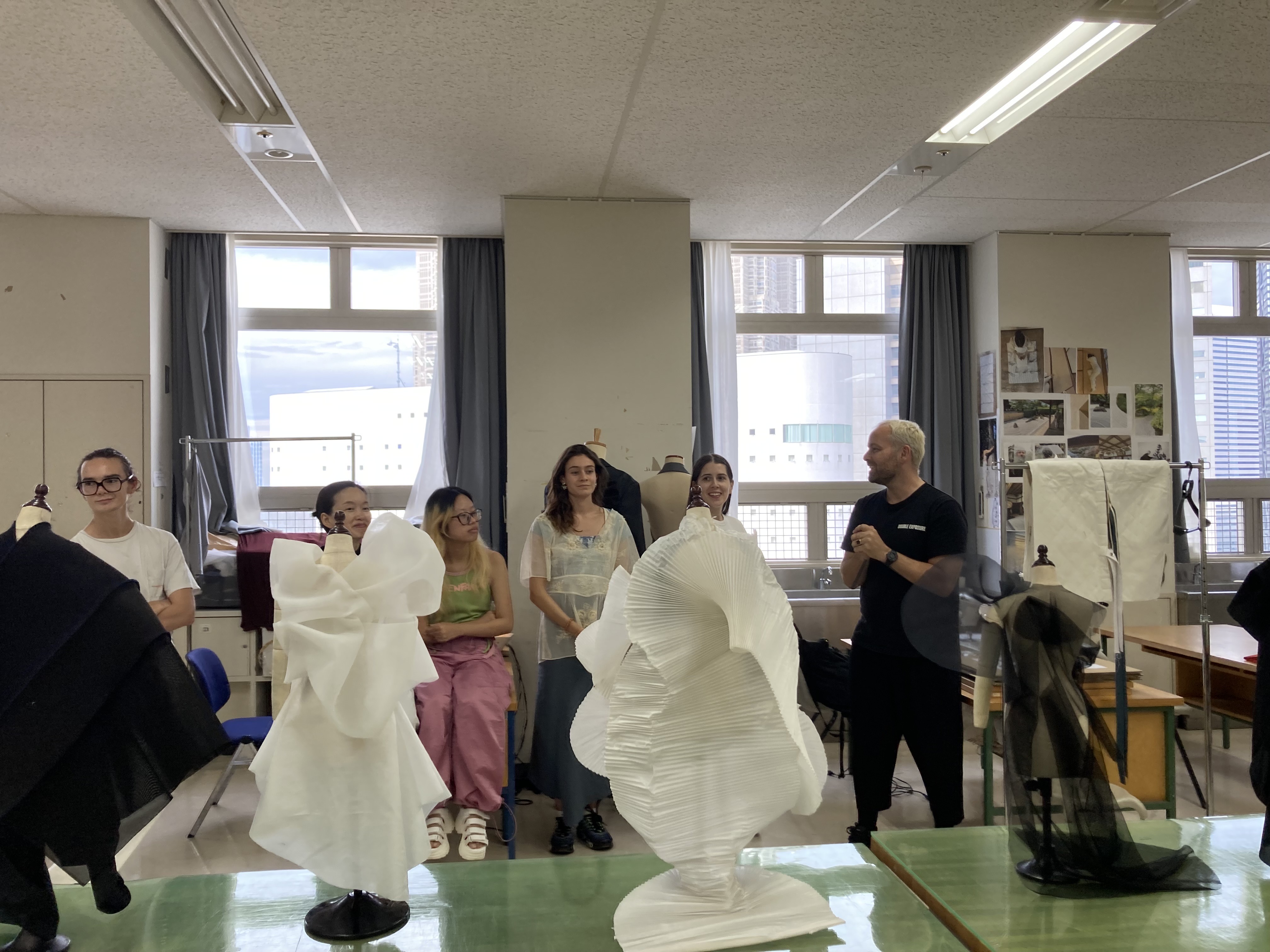 Through the practical workshop, he demonstrated how designers can re-examine and explore the design development process in ways that allow them to develop new, alternative artistic narratives. While working on the mannequin, the students had the opportunity to design for their muse, a real person they know and have a relationship with.