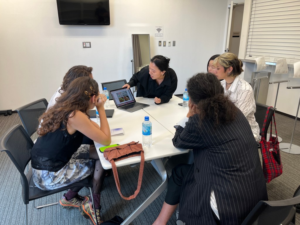 As a part of the class Japanese Art & Design, our first year students had the chance to visit some of the shows from the s/s 2025 Rakuten Fashion Week here in Tokyo last week. For this excursion, we invited ms. Takano Kumiko, who is a key figure for ACROSS, the trend observing association under PARCO, and who has been supporting our GFC course as a part-time lecturer from the start of the program for over ten years.