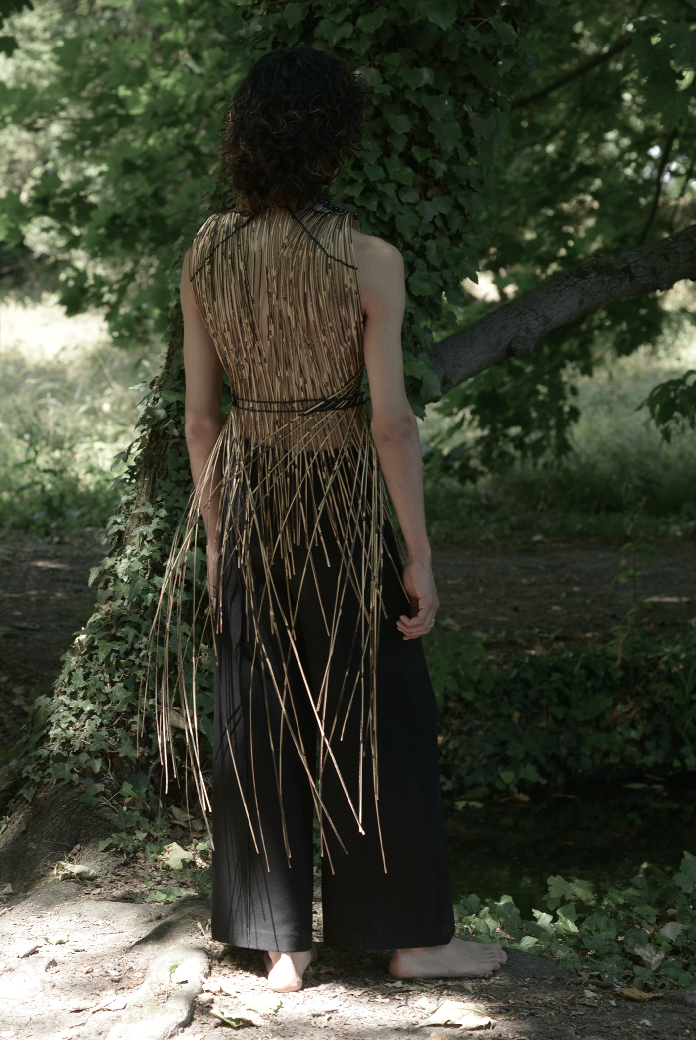 During her exchange at GFC, Laure decided to extend her time in Japan for one year, to intern with the brand Eatable of many orders (Atami, Japan), between 2021 and 2022, and apprentice with bamboo master Tanaka Kyokusho in 2022. While in Atami, she also participated in an artist-in-residence program that allowed her to develop and present a performance project with a butoh dancer dressed in silk and bamboo, inspired by the princess Kaguya. After her time in Japan, she returned to Paris to finish her education at ENSAD, where she developed a graduate collection of sculptures in bamboo and leather in 2023.