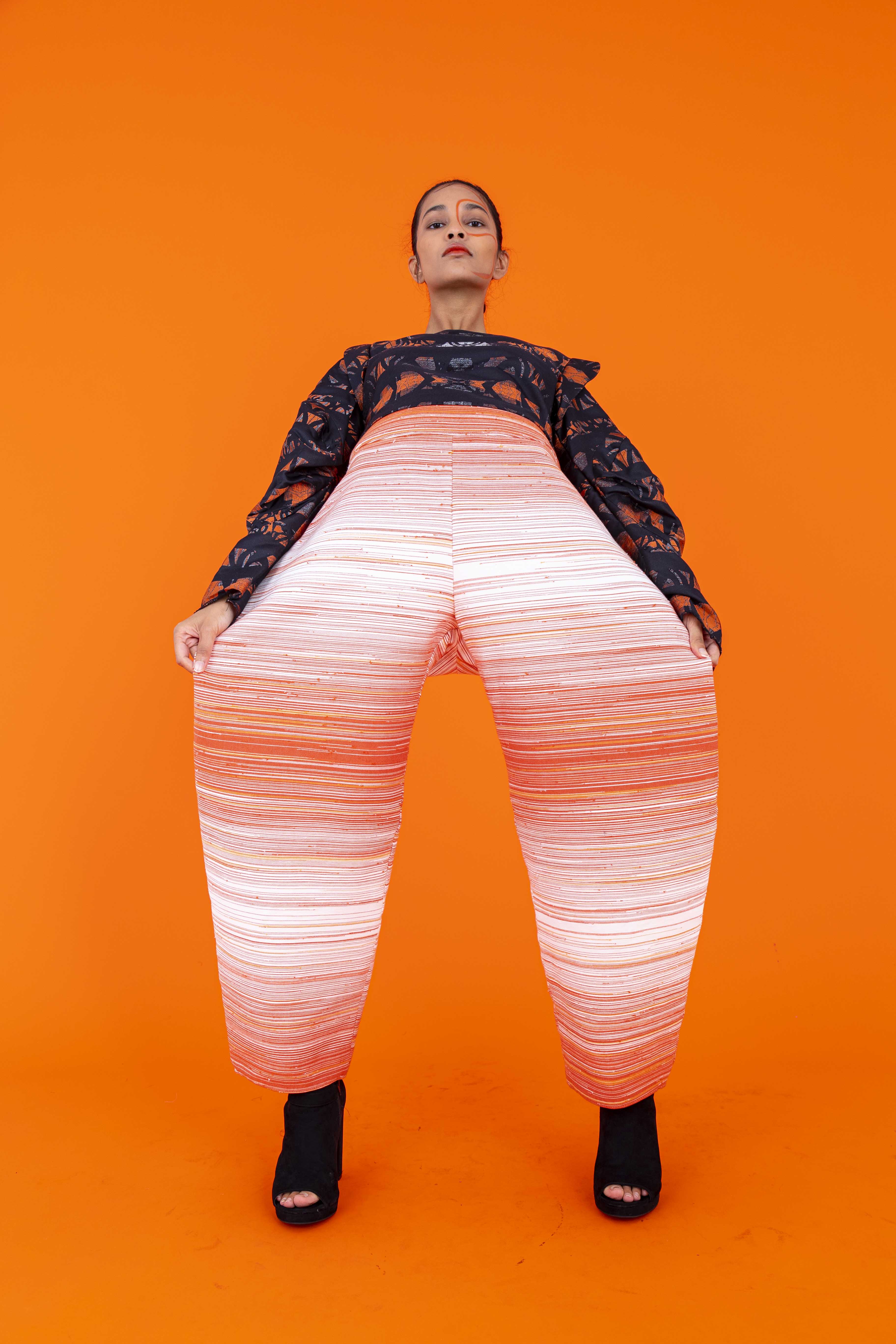 Ameena Imran based her collection on her research on “Female Masculinity” and gender archetypes present in the Pakistani Punjabi Theater.