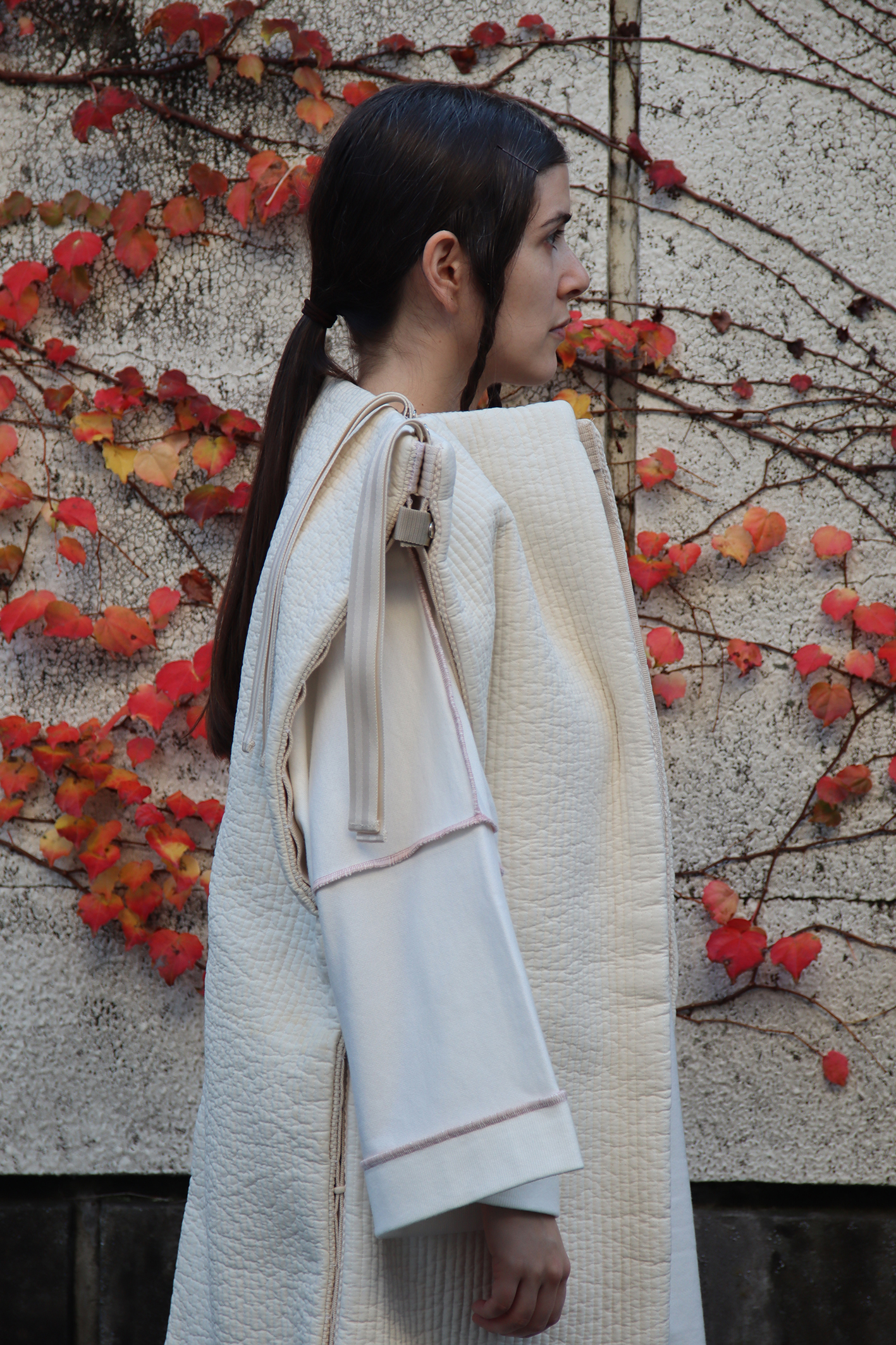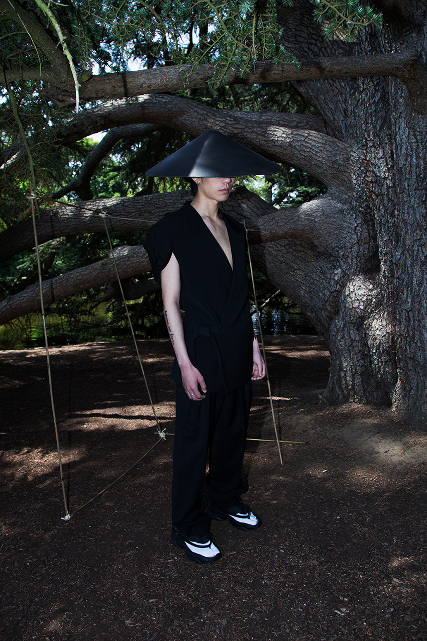 Making use of Japanese Zen philosophy Han’s collection uses oriental traditional aesthetics to re-design and upcycle western garments. Remaking and sustainability are themes present in her work.