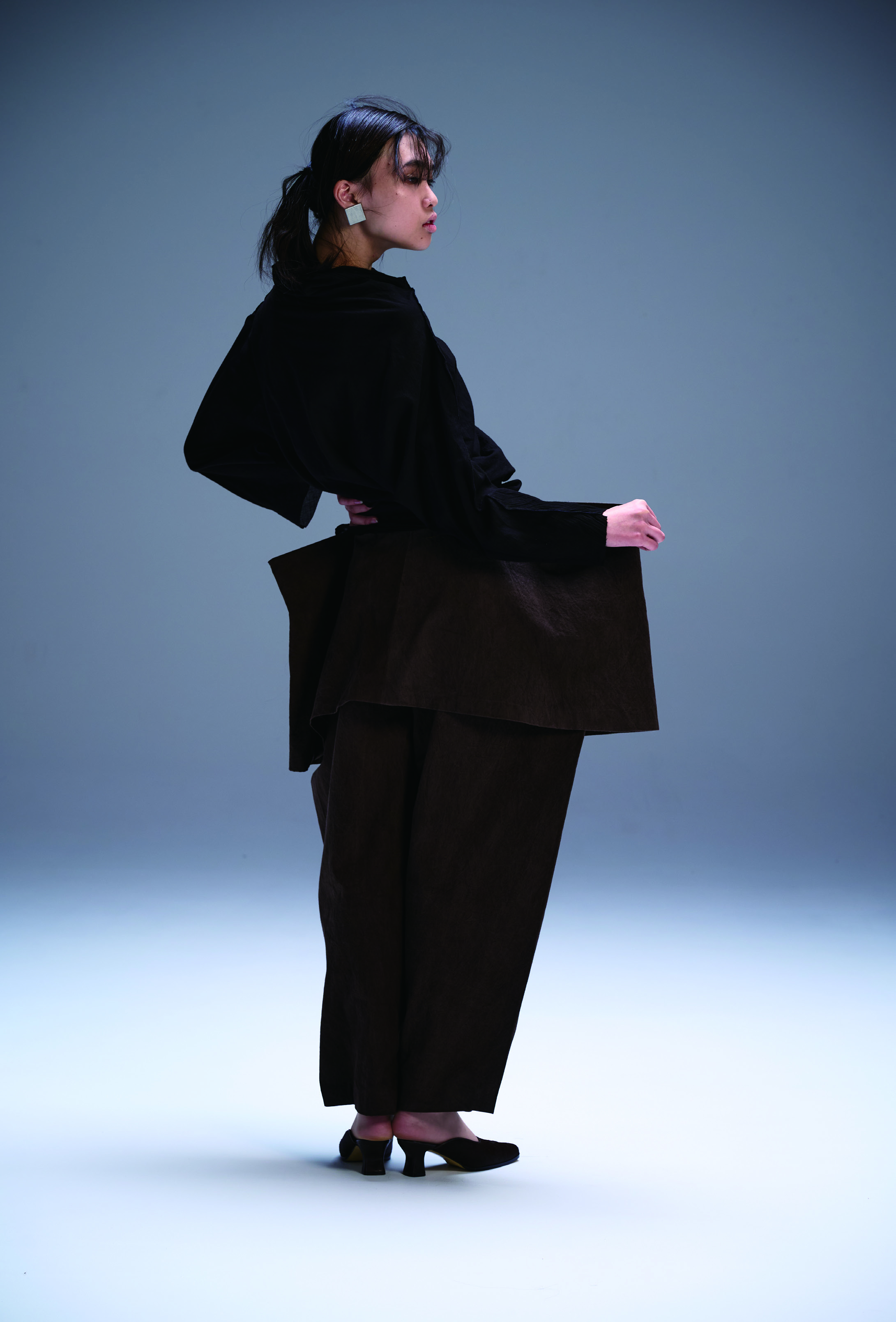 Stefan’s collection was developed through research into the Japanese traditional craft of mud-dyeing, called Dorozome. By using this technique, the collection addresses the difficulties in utilizing crafts and their values for making contemporary garments, resulting in pieces that embody connections with the environment, makers, and users.